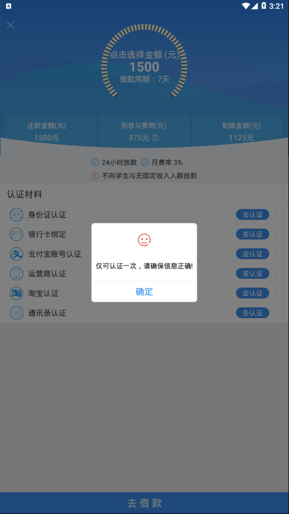 4、操作便捷:简单3步申请,一键借款;