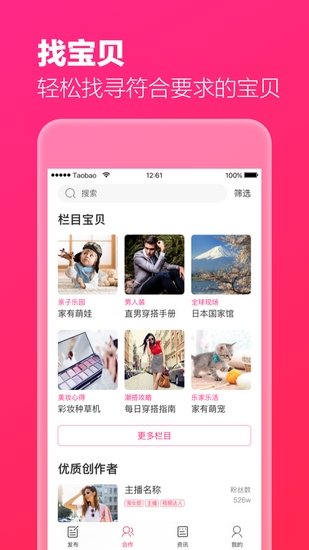淘宝直播app来自阿里巴巴旗下淘宝商城推出的淘宝直播视频购物,定位于“消费类直播”,淘宝直播app直播购物就购个痛快。用户来说目前女性比例约为80%,占了绝对主导。
