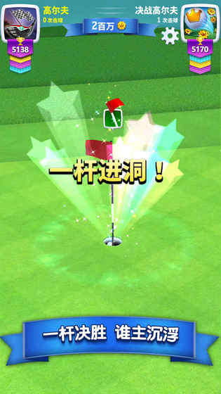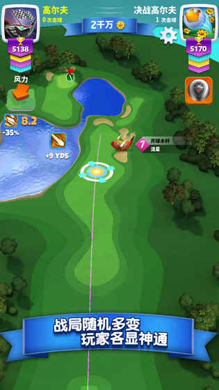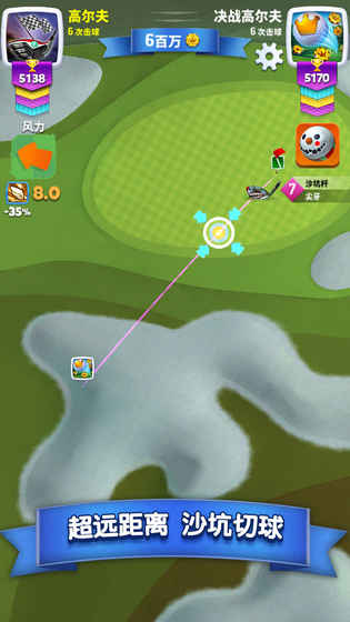 《决战高尔夫》是由华纳兄弟互动娱乐旗下的英国游戏工作室——Playdemic研发,北京北纬通信科技股份有限公司旗下的蜂巢游戏代理的一款高尔夫题材的休闲竞技类网络手游。游戏主要以玩家与玩家之间的高尔夫竞技比赛形式体现。游戏中有巡回赛、锦标赛、好友对战、黄金球等各种模式。游戏特色画面精美逼真地形丰富多样模拟真实场景操作简单易懂数值精细计算战局精彩多变比赛活动丰富游戏技巧1.果岭推杆控制力度,蓝色引导线刚过球洞为佳2.尽量避免落入长草和沙坑,否则会距离受限,控制不稳3.遇到树障碍,可左右拉曲线绕过去4.注意风向和风力,击球前先往风反方向移动适当的距离抵消风力5.熟悉地形和球杆特性,能更好的掌控比赛6.优先掌控指针正常速度时打完美的技巧7.滑动球的旋转,可以让球改变滚动方向和距离8.开球时可以根据地形风力更换球,但开球后中途就不可以更换了9.风对球的影响在空中,地面滚动不影响