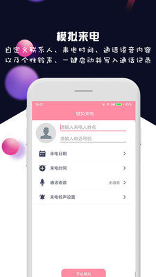 虚拟电话、短信、视频聊天都能模拟,使用方便,模拟更真实,使用安全!该软件具备模拟功能多样化:模拟打电话,模拟收发短信、模拟微信语音聊天等功能,有需要的欢迎下载。