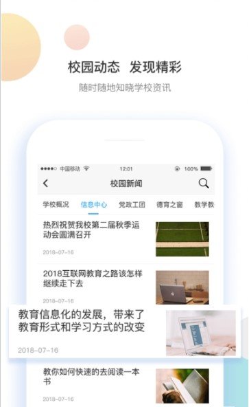 2、校园动态、发现精彩,随时随地知晓学校动态。