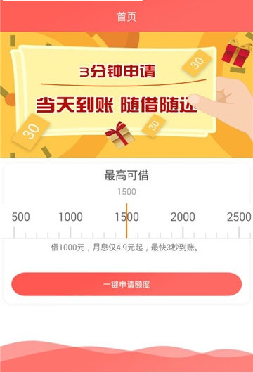 1、秒级授信:通过手机号注册成功后,即可获得借款额度;