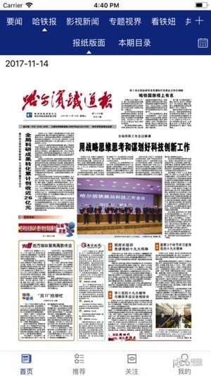 在哈铁新闻app,用户不仅可以阅览《哈尔滨铁道报》的新闻,还可以听到她为您朗读的亲切声音,您的老朋友哈铁电视新闻和专题,您所熟悉和喜爱的“铁妞”的全部内容也将尽收眼底。