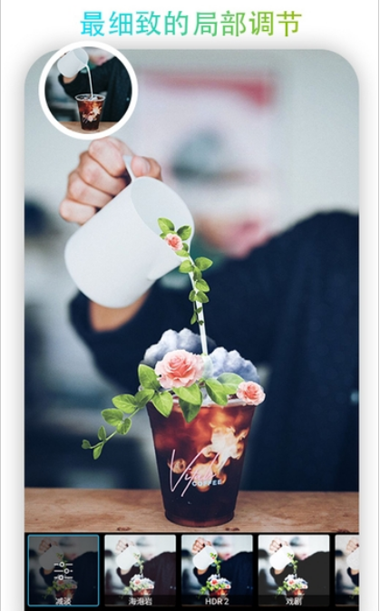 PicsArt美易照片编辑的画笔和橡皮擦可以对所有工具进行局部调节,细节产生意想不到的美感。
