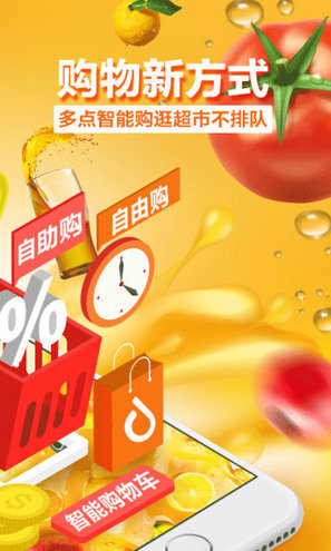 逛超市用多点智能购(自由购、自助收银机、智能购物车)体验购物新方式。