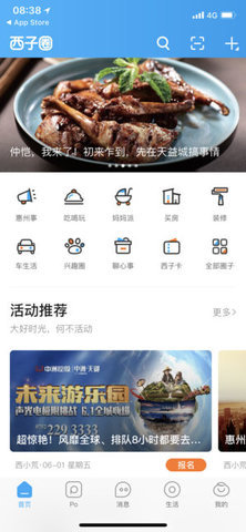 同城活动,圈子尽兴玩 1.你的圈子你做主,喜欢什么就关注什么,随心所欲 2.大吃货、爱摄影、情感交友,总有一个圈子适合你 3.周末出游、亲子郊游、相亲大会,约!约!约!
