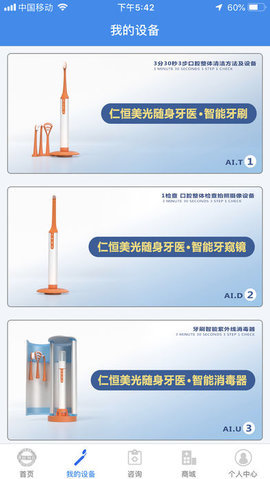 配合仁恒美光智能牙刷、仁恒美光智能牙窥镜、仁恒美光智能消毒器,实现3分30秒3步1检查口腔整体清洁管理,实时了解和管理口腔健康数据和个人口腔清洁历史情况;