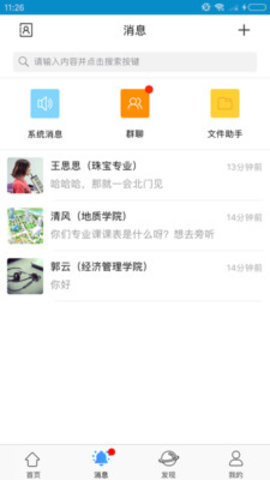 3、添加校园的好友,与好友在线进行文字、语音聊天