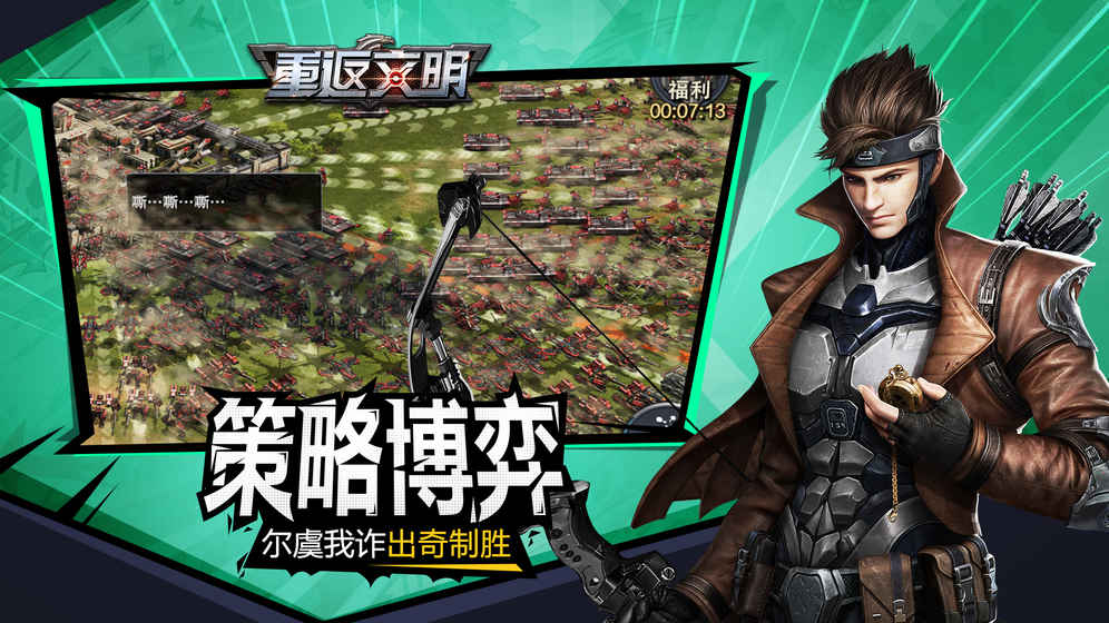 【游戏介绍】《重返文明》是首款废土重建背景下的战争策略手游,游戏采用架空的未来战争题材,并辅以切合世界观的“复古+蒸汽朋克+赛博朋克”的美术风格,展现了未来时代各大势力之间争夺领地和资源的战争场景。游戏美术品质精细,数值框架设计合理,在成熟的SLG主流玩法上加入了创新性的大沙盘模拟策略战斗,令玩家体验到极具代入感的时局变化,并为玩家提供了追求自由策略的沉浸式体验。【游戏特色】——实时作战,征伐野外军团开放式世界,万人同图激战争夺有限资源!枪林弹雨,硝烟弥漫在地图的每一个角落。——克敌制胜,极致策略对决无论时代,策略为王!步兵、战机、机甲、战车,十六大兵种相互克制;力场护盾、电磁干扰等超级武器出其不意改变战局!——联盟激战,争夺世界霸权强强联手,无懈可击!协同其他玩家组成联盟,与各大势力相互制衡,最终占领中枢帝都称霸世界!——全新兵种,激战一触即发特色英雄、策略玩法,剧情立足未来世界,辅以细腻3D写实画面,让玩家仿佛置身于刺激战场!