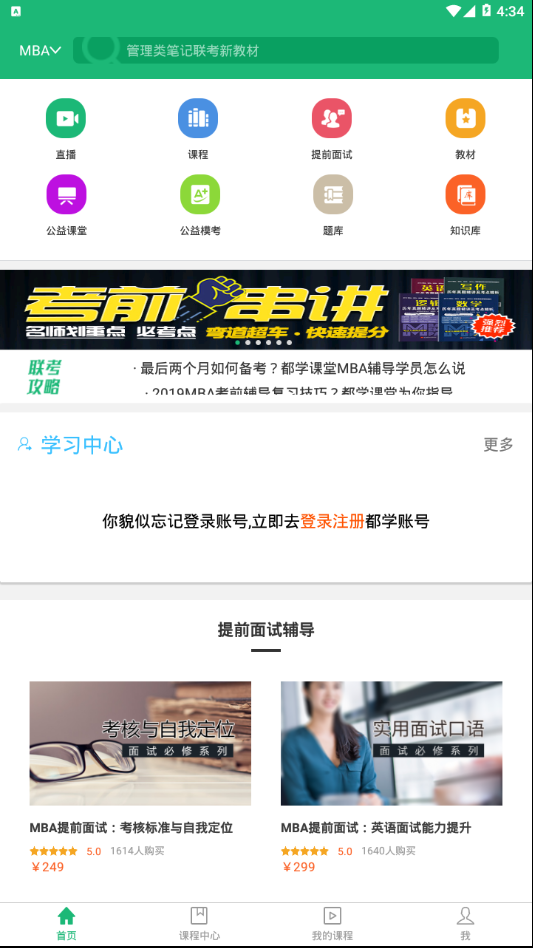 直播、课程、提前面试、教材