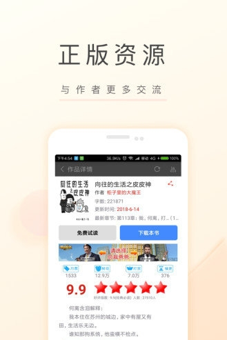 在线下载,离线使用,外出游玩、乘车空隙的好伴侣。飞卢中文网帐号同步使用,一键操作很便捷。