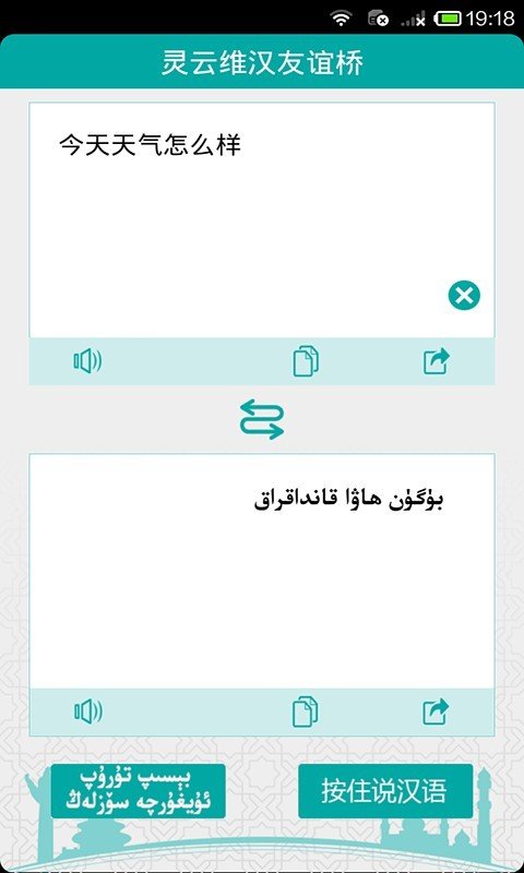 以下是由52秘籍小编为你带来的一款灵云维汉友谊桥软件应用,在这款软件里面随时随地的你就能拿出手机进行不同语言之间的相互翻译,软件还带有自动翻译的功能,感兴趣的快来看看吧!欢迎下载!