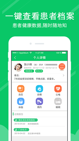 2、异常情况即时提醒:随时关注患者健康数据,异常情况及时预警提示,合理干预;