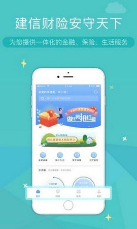 52秘籍小编为大家推荐使用一款建设银行旗下的建信财产保险有限公司推出的应用App,该软件具有金融,保险和生活服务等等功能,使用该软件能够为你定制不同的保险服务,有需要的欢迎下载使用!