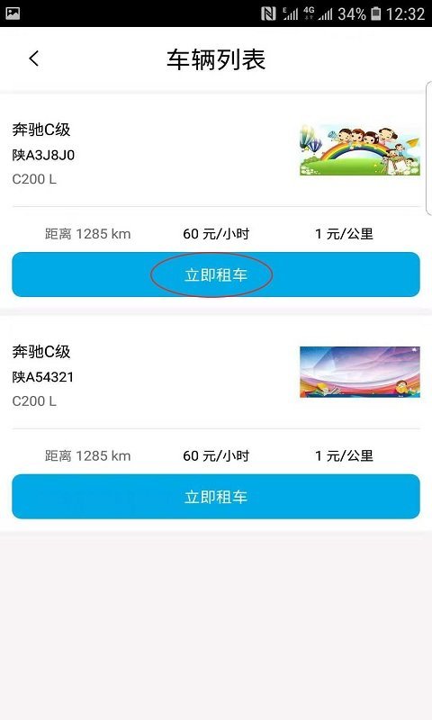 租车模块内,用户可选择进行租车和拼车,系统将显示与用户相近的车辆列表,此处采用了地图定位技术。