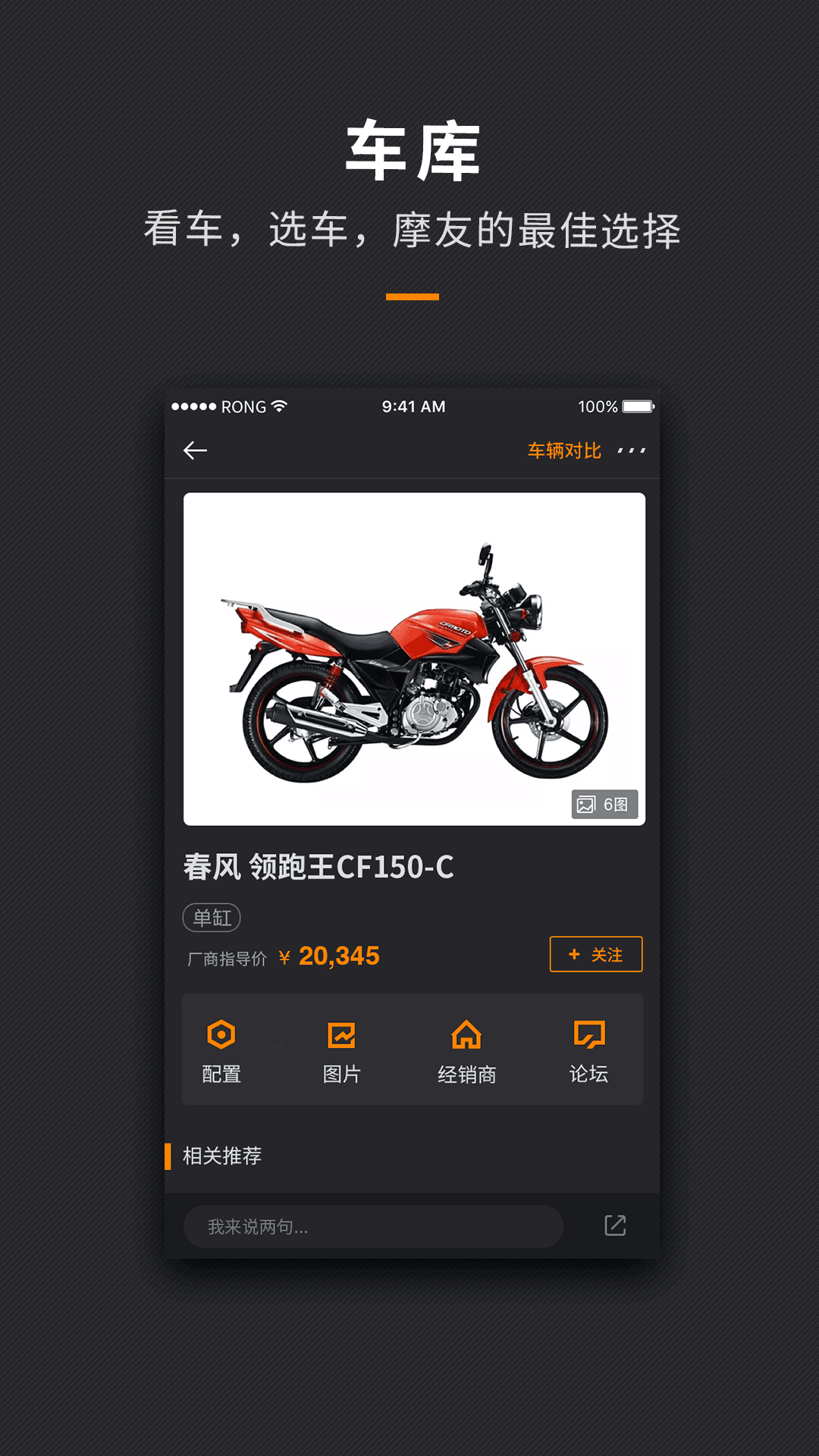 一款集摩友交流、摩托资讯、摩旅服务、选车比价为一体,专业针对国内摩托爱好者的移动APP