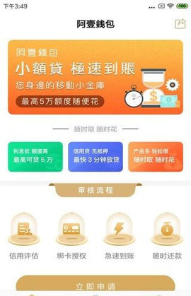 阿壹銭包,一款纯线上贷款的app,仅需身份证验证,多款产品任您选择,手机申请全程自动审核,放款速度快,长期可借;
