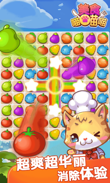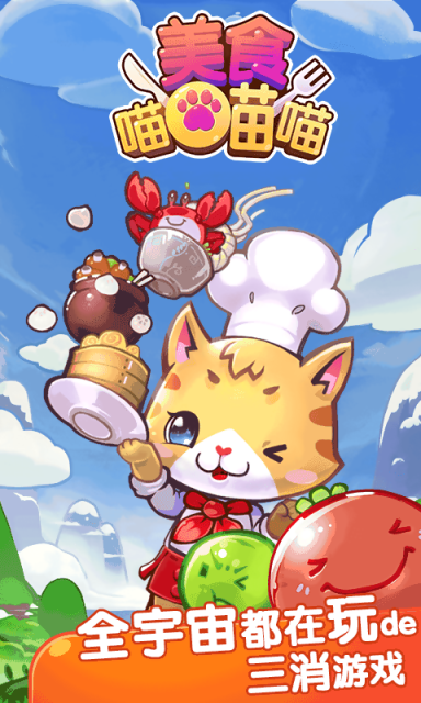 《美食喵喵喵》是一款超人气、超好玩的休闲游戏,简单易上手、画面精美、200+精心设计独特关卡、呆萌宠物形象,是您休闲娱乐、居家旅行的不二选择,10分钟就会让您爱上喵喵喵的美食世界