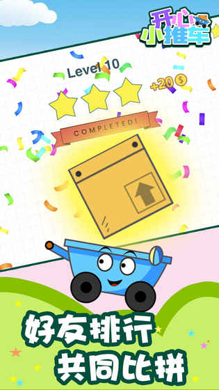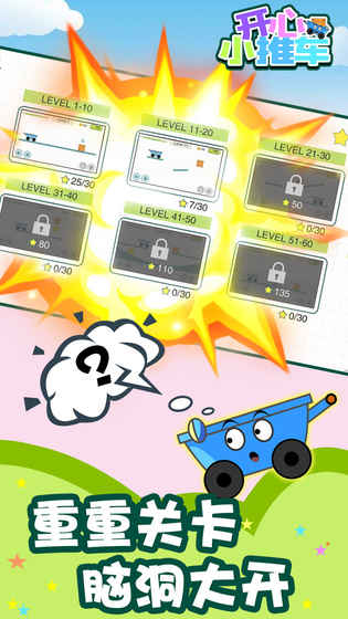 《开心小推车》是一款考验智力的手机休闲游戏,玩法规则是在屏幕上划出线条让消防员小猫可以救出盒子里的女猫猫。碰撞的次数越多,就可以获得更高的游戏分数,而且游戏会设定不同难度的关卡供给玩家来挑战。开心小推车游戏的画面以及音效都有了很大提升,小推车做了前后方向的摇杆,方便玩家手动操作,指挥消防员小猫到达目的地。一句话评价,开心小推车安卓版游戏是一款超爽的休闲元素小游戏。