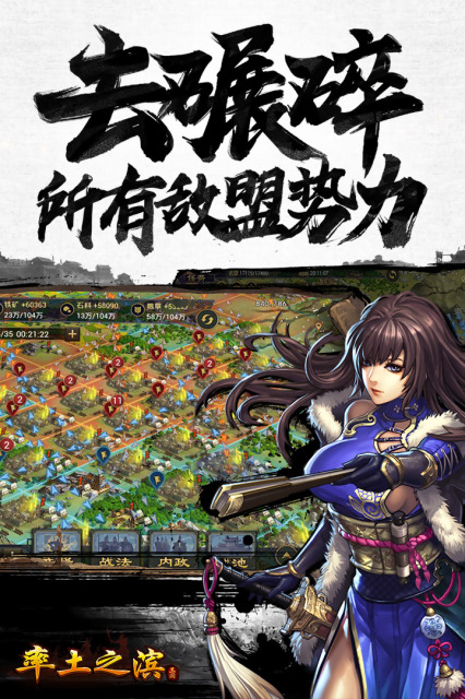军政战略大手游《率土之滨》邀吾王开国吞天! 军政战略大手游《率土之滨》邀吾王开国吞天!《率土之滨》是前所未有的多人地缘战略手游(MMOSLG)。吾王的目标是发展军政,强大国家。世界领土资源有限,吾王将与其他玩家展开激烈争夺。大争之世战火弥漫,招募名将、发展军政、结交盟友,势力不断扩充。权利的游戏没有剧本,世界发展是三国演绎、七雄对决,甚至一统天下,全由吾王主宰!