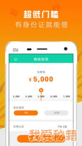 有钱快花是一款专为用户提供贷款的服务平台,使用这款软件轻轻松松解决你的燃眉之急,门槛超低,只要提供一张身份证和手机号就能贷款,让你随时随地想贷就贷,需要的朋友欢迎下载使用吧!