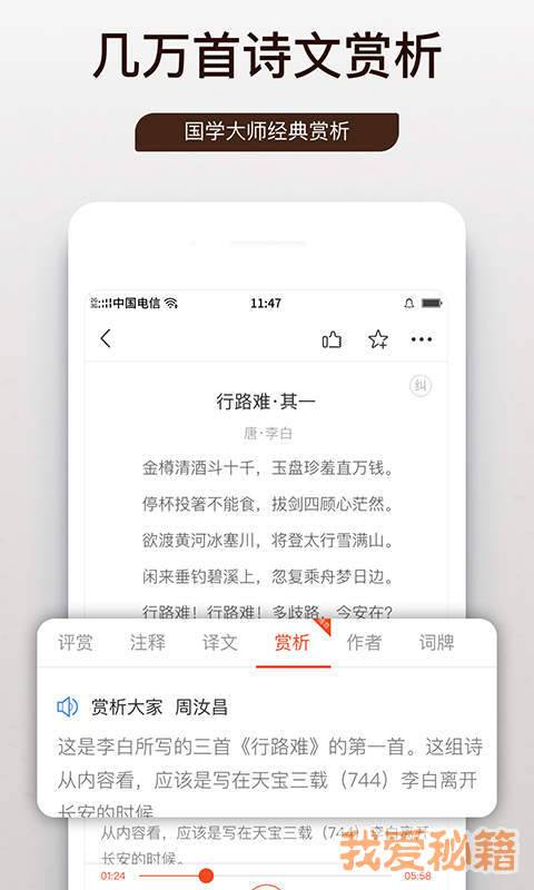 问道国学app是一款非常好用的教育学习软件,专为用户提供经典诗词文化的欣赏、学习,使用该软件是你学习必备的软件之一,功能强大,具有诗文诵读、名师解读、诗文赏析等等功能,由52秘籍小编精心推荐,需要的欢迎下载!