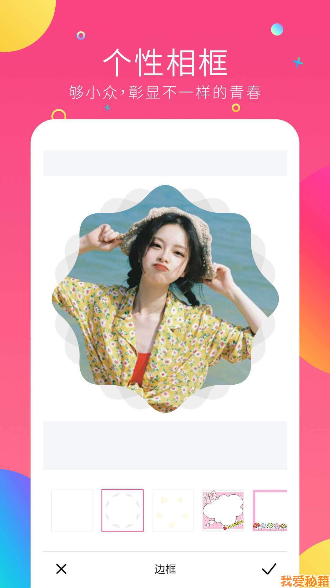 个性相框:够小众,才不同。好看的皮囊千篇一律,有趣的相框万里挑一。精致白边图,不规则相框,涂鸦,萌妹子风格,卡通动漫组合……别young青春纪念册,我就要彰显我的个性。