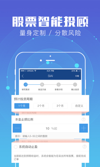 资配易是一款针对A股的证券投资人工智能APP,为机构投资者和个人投资者提供由人工智能生产并执行的投资策略和计划。