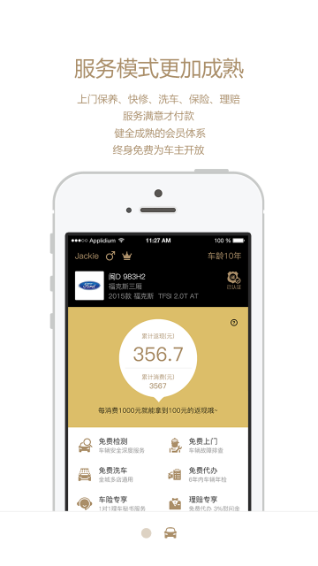 【会员制理车更放心】 会员享受私车管家服务,建立专属车辆档案,匹配车辆保养需求,更有理车秘书1对1专属服务。