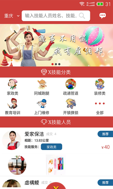 雇佣邦是由乔亿网络科技有限公司独立开发运营的一款线上临时工、教育培训、家政服务等技能雇佣交易预约的双向互动app。它弥补了当前生活服务类app市场单一化功能的空缺。在这里,用户可以通过提供服务给别人来获取相应的报酬。
