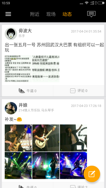 当然,离开现场后,您还可以发布您的动态,拉帮结派,找同好,发展你的摇滚朋友圈。