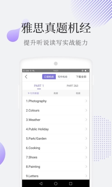 高命中率口语机经收录,精选雅思口语真题,定义考频,分类练习,定期更新。雅思口语一个APP搞定~
