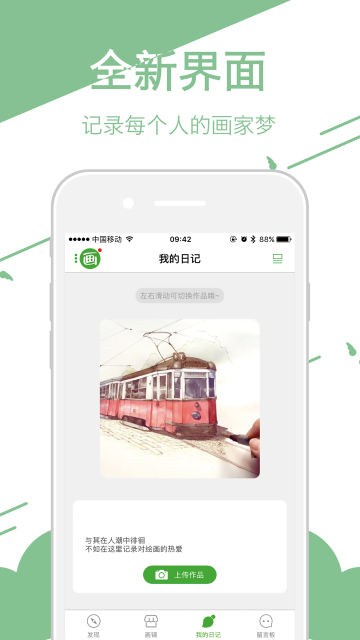 画画日记,每个人都有一个画家梦画画日记,是一个为你提供绘画交流的app,重新定义你对画画的兴趣。它可以,购买画材,寻找教程...为你的梦想,搭建扎根的地方你可以,记录画画,寻找大触...在这里找到更多共鸣【画铺】每一件真正用心的画材,都能为你的青春上色【画报】画星人自己的故事集,还有定期的画材评测专辑哦【作品】素描、漫画、涂鸦...你能想象到的作品,大触们都会在这里展示出来【我的日记】在这里记录你的画画日记,泼洒你的画家梦【留言板】也许在这里,你会找到更多的同类人很多时候,我们都在思考:画画日记到底能为用户带来些什么?{热爱绘画}也许所有的爱,都会伴随着不可磨灭的痛。但是,请相信画画是这个星球上,极少数让热爱不留遗憾的事情,它能给你别的事无法给予的幸福。在画画日记里,找到一群志同道合的朋友,可能会让热爱更加热爱。{找到自我}当每个人在经历着青春时,可能不会认为自己在做的会是多么有意义的事情,只是热爱不断驱动着一群人,执着的握着画笔不放,只感觉有太多精力可以肆意挥霍。画画日记,给每位热爱画画的用户,提供挥霍精力、泼洒梦想的绘画乌托邦。{寻回梦想}我们希望每个人都能在这里,找到曾经梦里出现过的那幅画。并且,用日记的方式,记录下自己的绘画生涯。或许绝大部分人,都不会成为世人眼中的“名家”,但每一个绘画爱好者,都可以在自己的日记里,感受到来自画画日记其他用户的掌声。??感谢360手机助手推荐感谢flyme推荐感谢小众软件推荐? ? ? ? ? ? ? ? ? ? ? ? ? ? ? ? ? ? ? ? ? ? ? ? ? ? ? ? ?------联系方式-------画画日记微博:画画日记app画画日记微信:画画日记app画画日记淘宝店:画画日记app画画日记贴吧:画画日记画画日记画星人QQ群:468077289画画日记:http://www.huahuariji.com