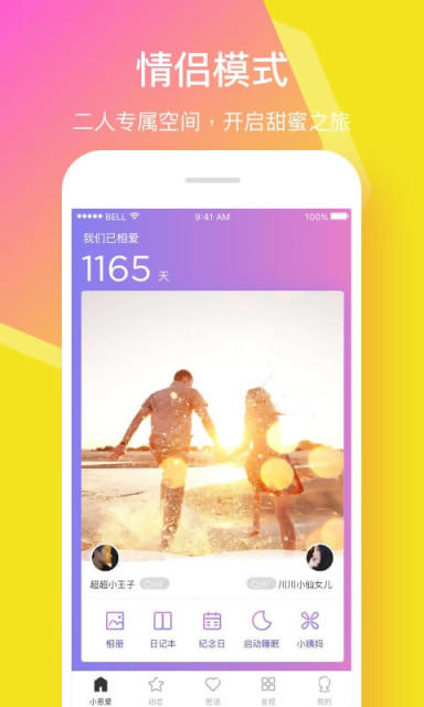 情侣恋爱神器,能距离感应,一键叫Ta起床 -专为2亿情侣打造-荣登湖南卫视金鹰节潮互联网社交榜-荣获年度金瑞奖--创新奖-荣获年度超受女性喜爱APP-荣获年度极具潜力移动社交类应用奖小恩爱是为情侣量身定制的一站式服务平台,为情侣提供了私密互动工具、情侣社区、游戏、情侣消费指南等情侣专属服务。功能简介【私密互动工具】私密聊天:记录爱的点滴,只有情侣彼此能看到;远程闹钟:让TA一键叫你起床;纪念日:再也不会忘记各种属于你们的日子啦;小姨妈:马上知道女友来那个了;发送距离:每一次距离的发送,都承载着重逢的渴望;日记本:可以共享的爱情日记;私密相册:用照片记录下你们的美好瞬间;今日运势:每日为你测算爱情、财运指数;记账本:独有的情侣共同记账模式,在精打细算中享受爱情;应用中心:随时上架新鲜工具等你体验;【情侣社区】与其他情侣交流分享【游戏】超级宝宝:一起照顾你们的宝宝;爱情树:一起来为你们的爱情挂牌许愿吧;情侣爱宠:养只爱宠吧,和你们的爱情一同长大;【情侣消费指南】更多功能,等待你们的发现。