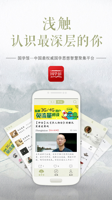 国学馆是一款全免流量(针对联通用户),以国学名家为主线,内容形式以短文和音频为主,书籍为辅的多媒体体验的客户端APP。围绕这些主线和内容,国学馆还倾力打造一个国学氛围浓厚的讨论和交流社区,让更多人的现代人能研读经典、传承国学。记住,是全免流量哦!Enjoy!