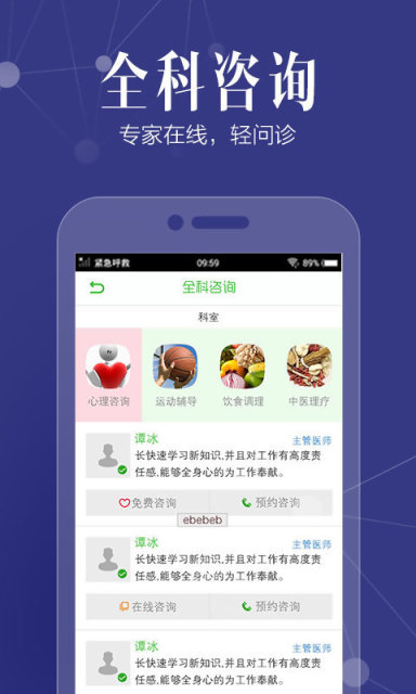 您可以通过手机客户端对您的身体进行"自查和自问",用户可以通过语音、文字、图片、电话的途径向健康E掌控的在职医生提问,他们将指导您就医、诊疗。我们甚至还可以为你导航寻找您附近药店、医疗设备、养生馆等。最重要的是,您还可以通过我们的设备进行健康检测(包括:心电、血压、血压、身高体重、脂肪含量等),自动对您的健康进行管理。