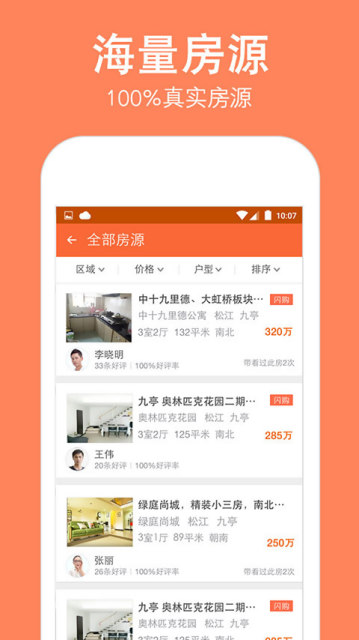 4,“最近有朋友推荐了安个家的APP找房,我试了一下找莘庄附近的二手房,虽然房源没有安居客多,但都是真实的房源,而且价格很真实的,经纪人很热情,专业,靠谱,还会推荐身边要买房的朋友使用安个家找房神器APP。”—cathy5858