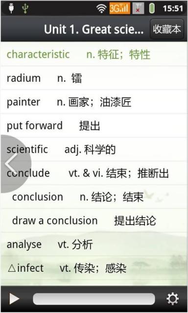 .包含高中必修1到选修10的单词和课文(带翻译),真人高清发音,可跟读、可点读。