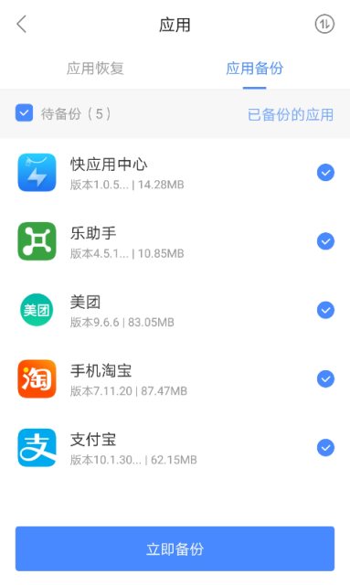 最新的版本已支持彩信和图片备份功能,通讯录、短信、通话记录、应用的备份也一并支持。