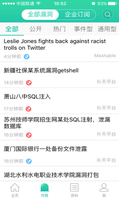 ● 最快最全的漏洞收集整理 ● 最前沿权威信息发布的技术文章 ● 最及时最完整的安全资讯