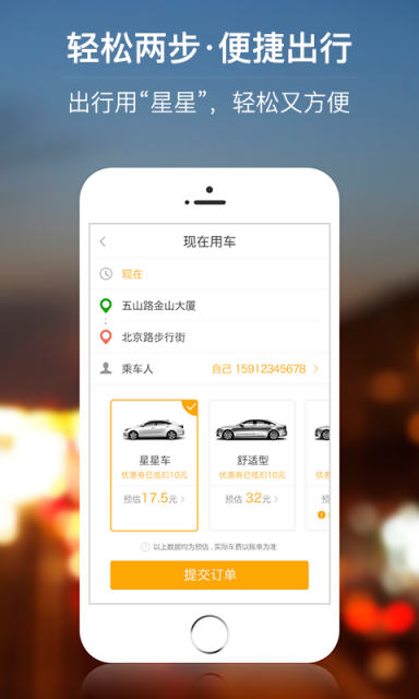 星星打车是一款打车APP,是立足于华南地区的本土知名品牌,由知名上市企业参与投资,通过整合大众的用车需求与车辆租赁服务 ,以信息分享平台的方式,实现供需平衡,为大城市普遍的坐车挤、打车难等出行问题提供解决方案。
