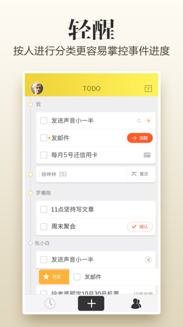 无论是在职场中的工作项目跟进,还是贴心的为亲人发送时间提醒,轻醒都会陪在您的身边,让生活变得更顺畅!