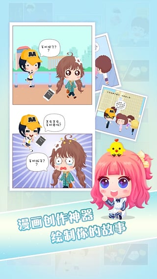「创作漫画」------简单自定义角色创建萌萌哒的你,背景、道具全部不用画,手指点点就能完成,半自动漫画创作模式你肯定没玩过,短篇,连载,只要你有故事你就是大漫画家,还可以让好友客串你的漫画哦~交友互动新技能get√,二次元值得拥有!「阅读漫画」------海量广场海量作品,没错我们的漫画都是萌萌哒二次元网友作品,但水平绝不low,单篇漫画让你捧腹大笑,连载漫画作品更是值得追番,没准你会发现这些大触就是你身边的人哦,如果你创作的漫画不错也会被推荐哦~玩法太多了就不都介绍了,反正说多了你们也不会看完,还是下载一个试试吧~