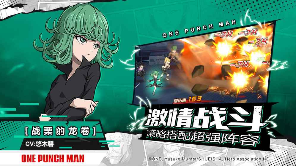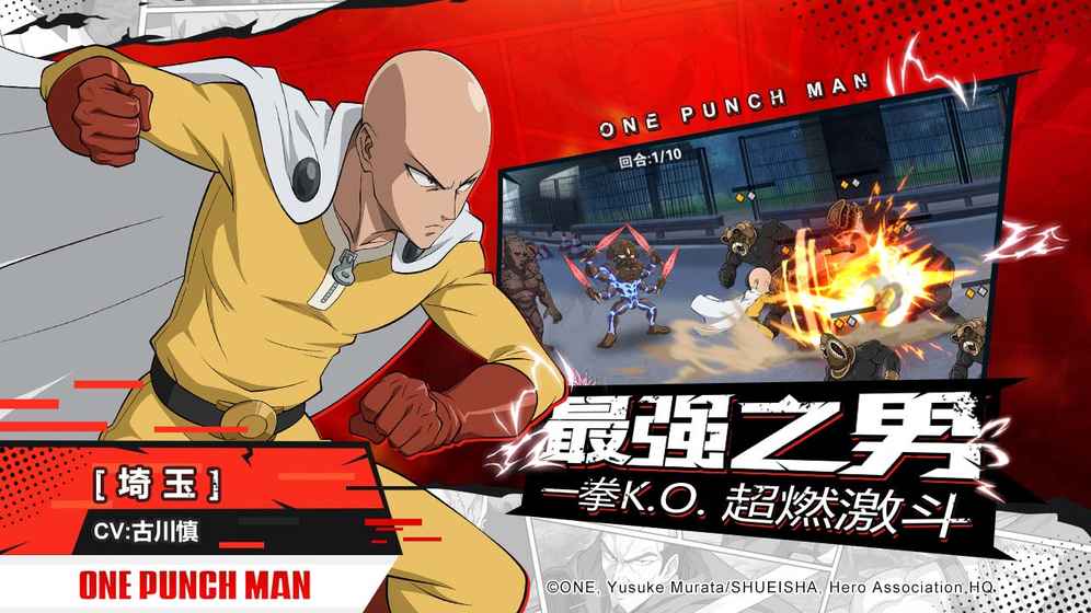 正版授权《一拳超人:最强之男》各位亲爱的英雄们!《一拳超人》正版授权手游——《一拳超人:最强之男》事前预约现已正式启动!《一拳超人》动漫正版授权联手日本专业美术团队!历时两年精心打造,《一拳超人:最强之男》即将与各位英雄们见面!怪人的魔爪已经向世界伸展!埼玉的铁拳已经蓄势待发!各位英雄们!你们准备好了么?快来加入我们!=================还原原著=================忠实还原动画剧情、燃爆战斗、人气角色、原版声优,亲身体验热血的动画剧情!华丽战斗、魄力场面全还原,更有SSR精致到表情的大招特写!S级英雄,怪人!超人气英雄怪人悉数登场,组建属于你的强大队伍! 亲身体验琦玉普通的一拳、普通连续拳的威慑!=================激燃战斗=================激燃特效、超强技能、华丽的战斗场面重燃战斗之魂!武器、格斗、科技、超能四系角色,丰富策略,自由搭配,激活强力特效!创新的战斗机制、埼玉的激萌演出,体验一拳通关的决定一击!=================创新玩法=================探索、试炼、Boss,以轻RPG展现多样玩法,赢取丰厚奖励!进化所、试炼、竞技场,以多种组队策略,助你称霸S级英雄!与埼玉一起日常锻炼!体验轻松寻宝、一拳通关!