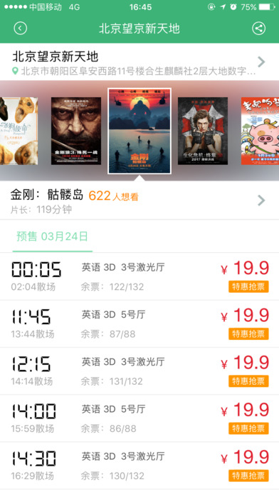 2、查看影院实时排期和价格;