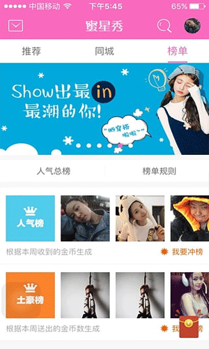 1、蜜星秀是一个美女主播养成平台,用户可以使用手机录制视频,并上传到平台中。用户发布自己的视频内容后,其他人可以观看,评论,打赏,聊天等操作。