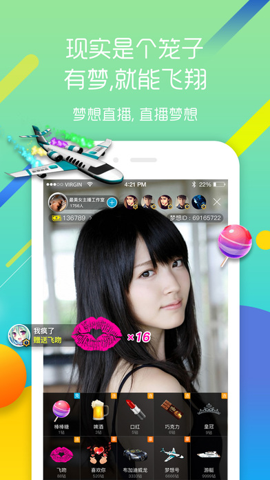 3.炫酷刷屏:能够彰显贵族身份,用户通过礼物刷屏在众多粉丝中脱颖而出