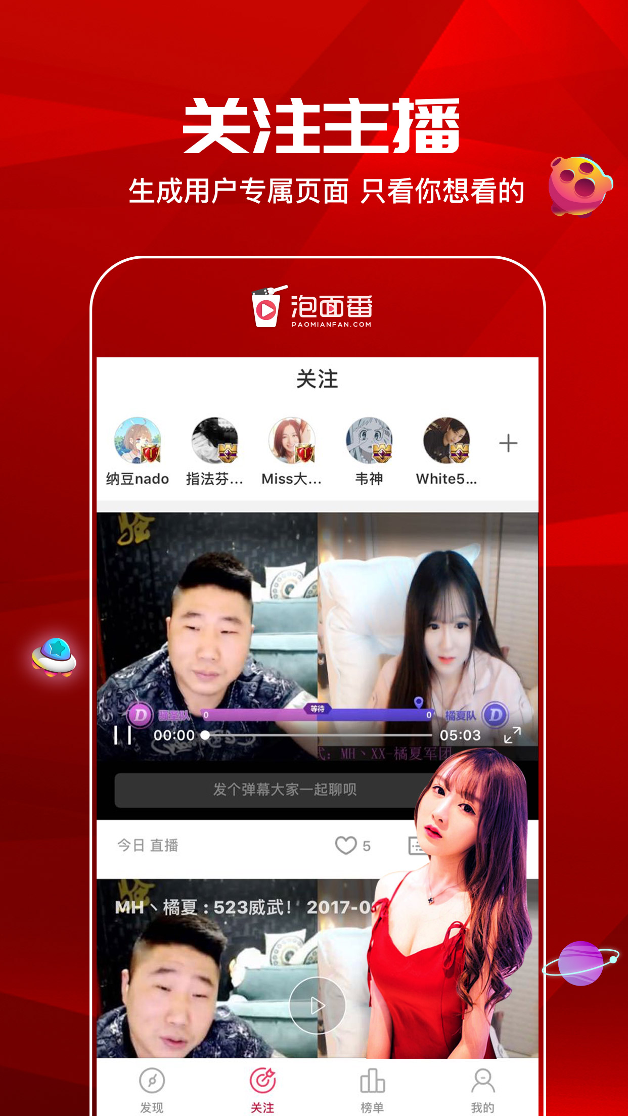 泡面番主播圈APP是一款集众多电竞、娱乐等主播的直播短视频平台,这里有精彩热门游戏视频大全,汇集各类主播大神,战队选手,身边的队友,为大家与主播互动提供帮助!感兴趣的小伙伴快来小黑吧!