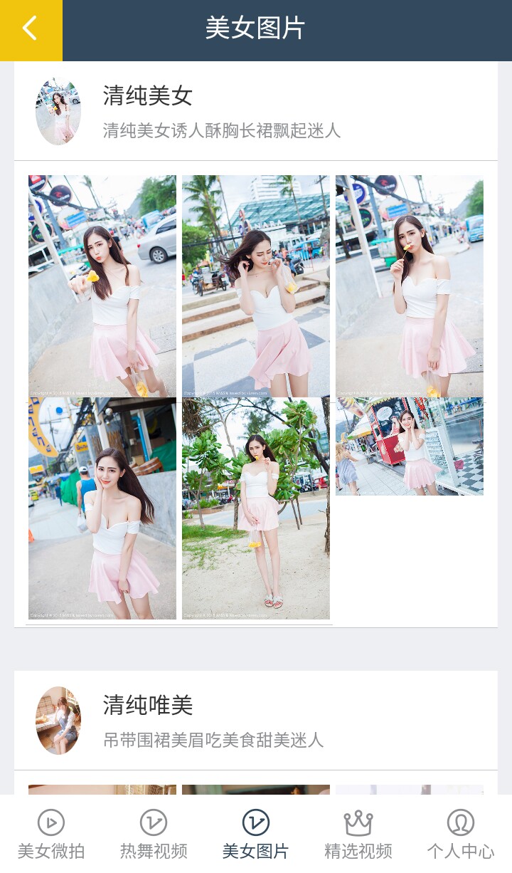丝袜,美腿,主播,热舞,街拍,微拍等栏目,都可以通过左上角的导航进入。