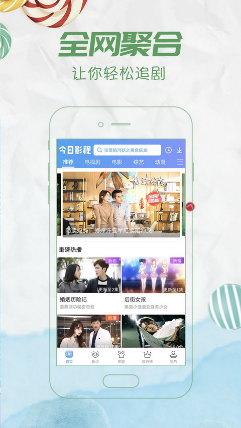 今日影视安卓版是一款资源非常丰富发手机影音播放器,今日影视app全面聚合电影、电视剧、综艺、日韩动漫等各类节目。汇聚千万视频,新鲜看不停。热播剧集一键缓存,高清播放流畅不卡顿,快速搜索,精彩自己掌控。